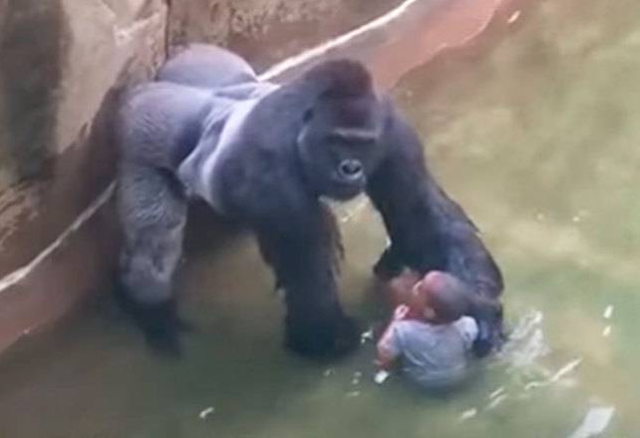O último momento registrado do gorila Harambe, morto após uma criança cair em sua área no Zoológico de Cincinnati, em 2016.
